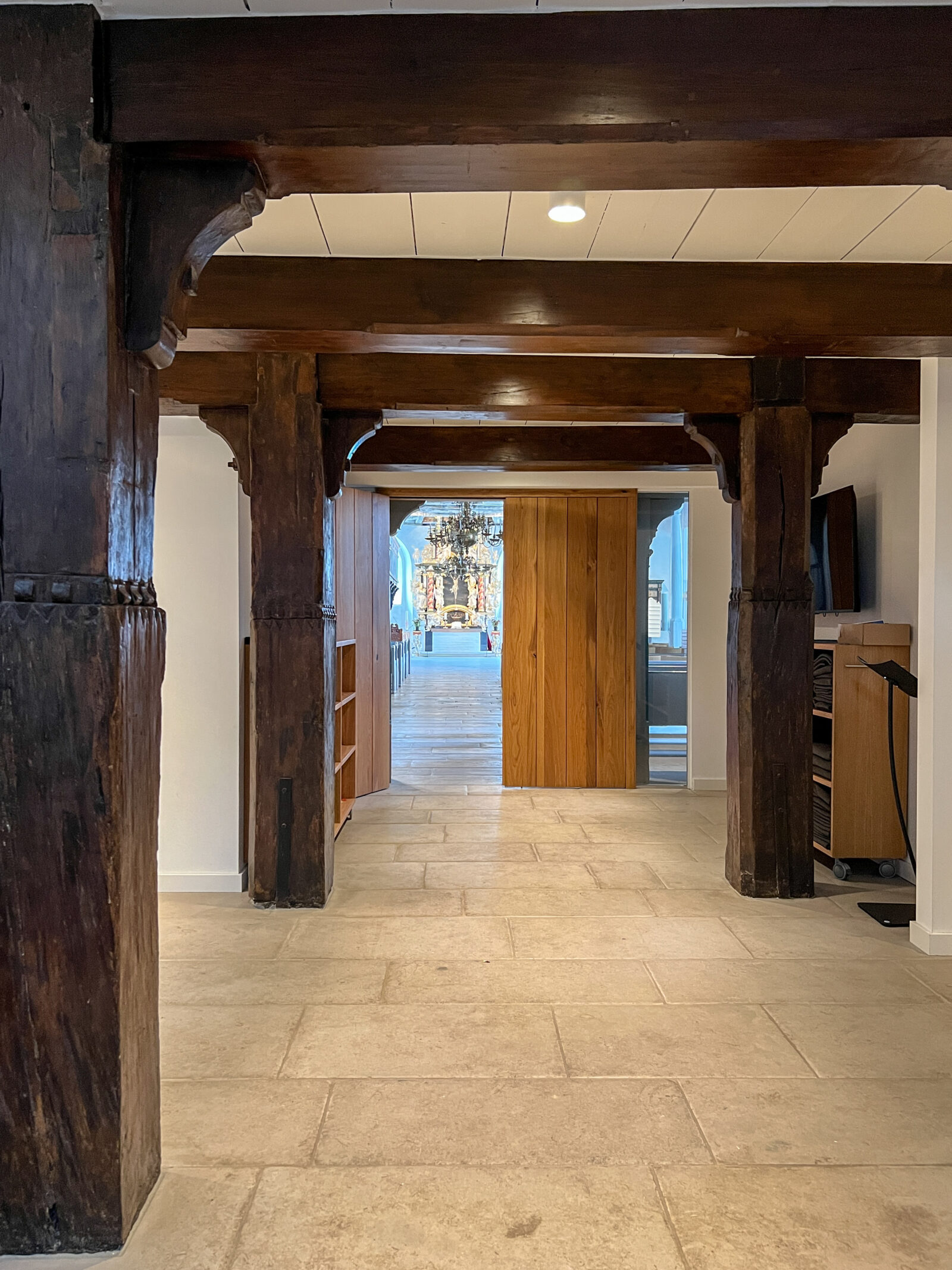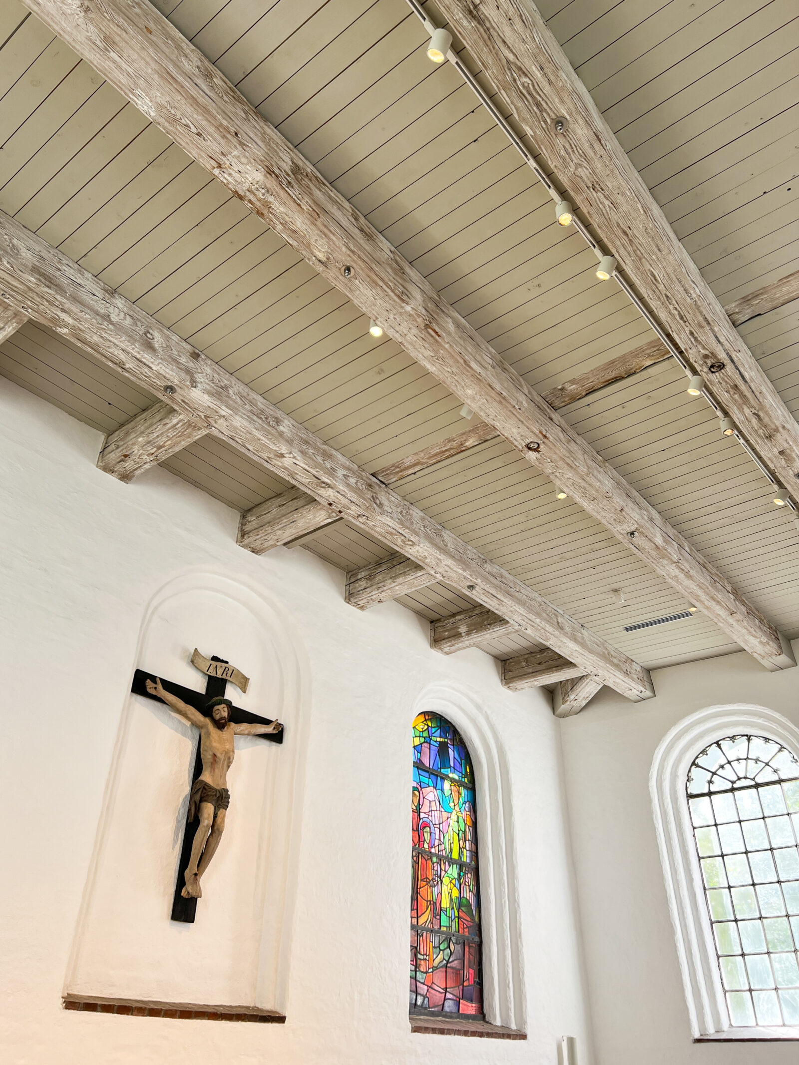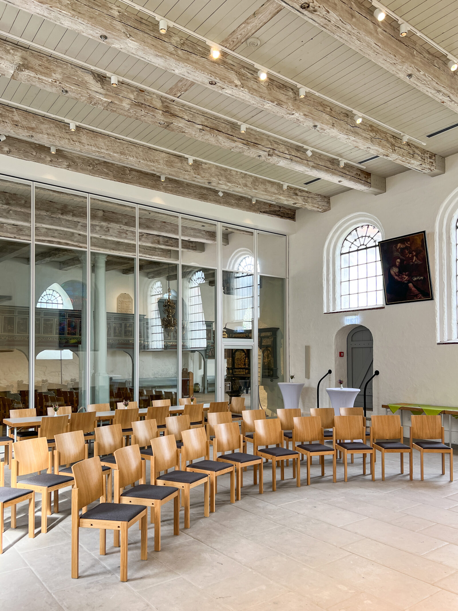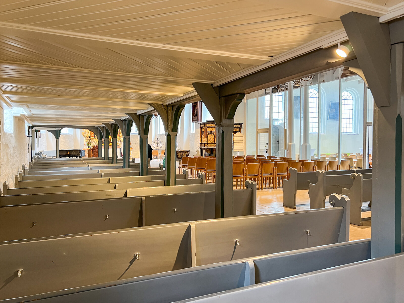 Durch eine zurückhaltende Lichtführung entsteht eine ruhige, ausgewogene Atmosphäre, die sowohl dem Gottesdienst als auch Momenten der Stille gerecht wird. Die Beleuchtung fügt sich selbstverständlich in den bestehenden Raum ein und macht die besondere Wirkung der Kirche neu erfahrbar.