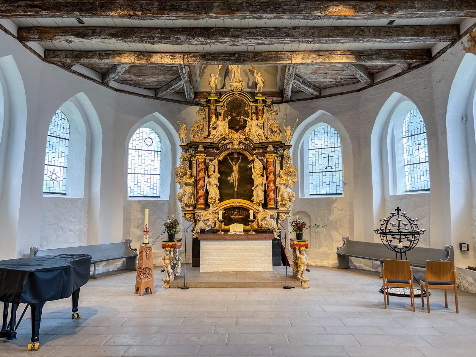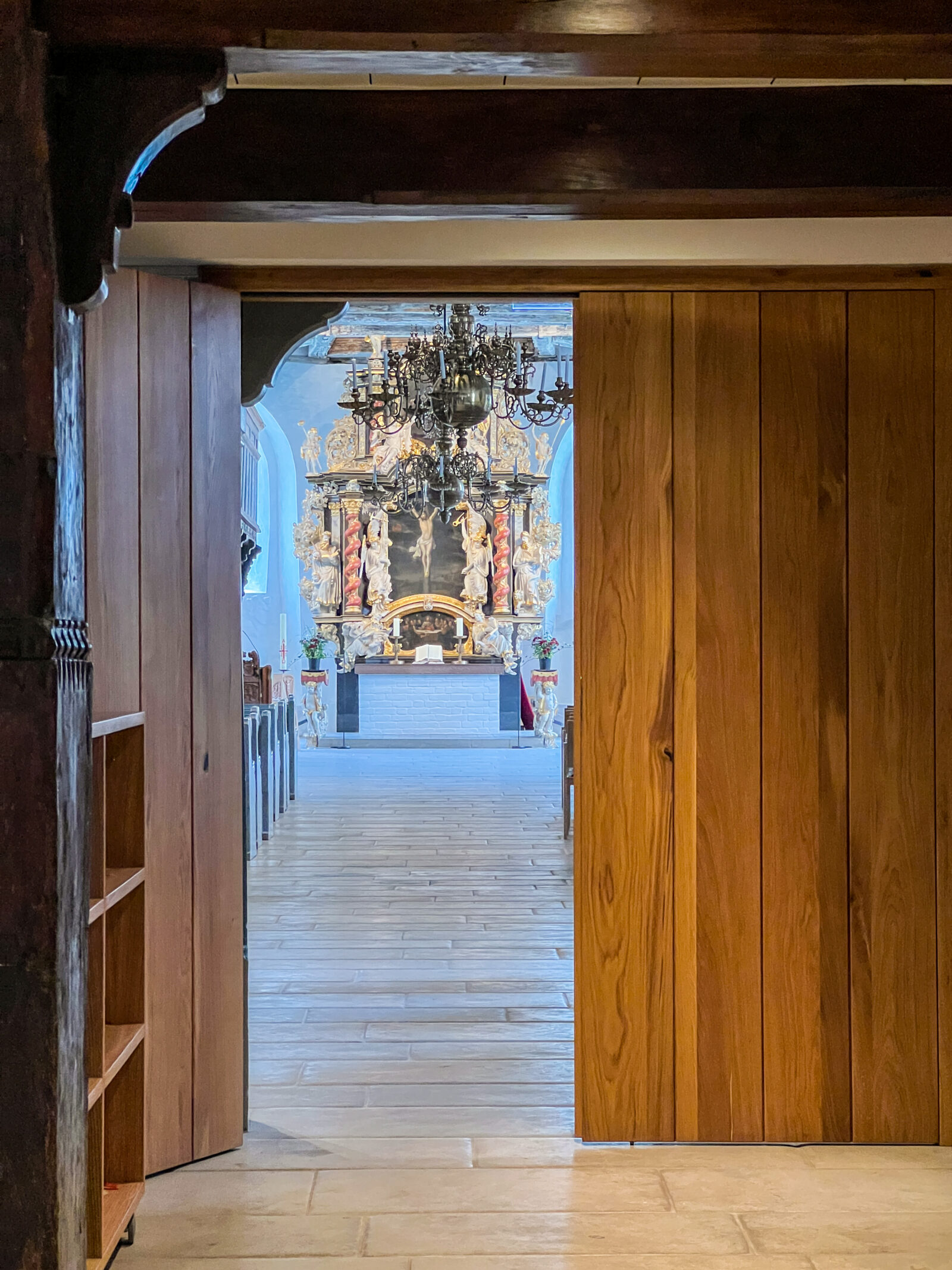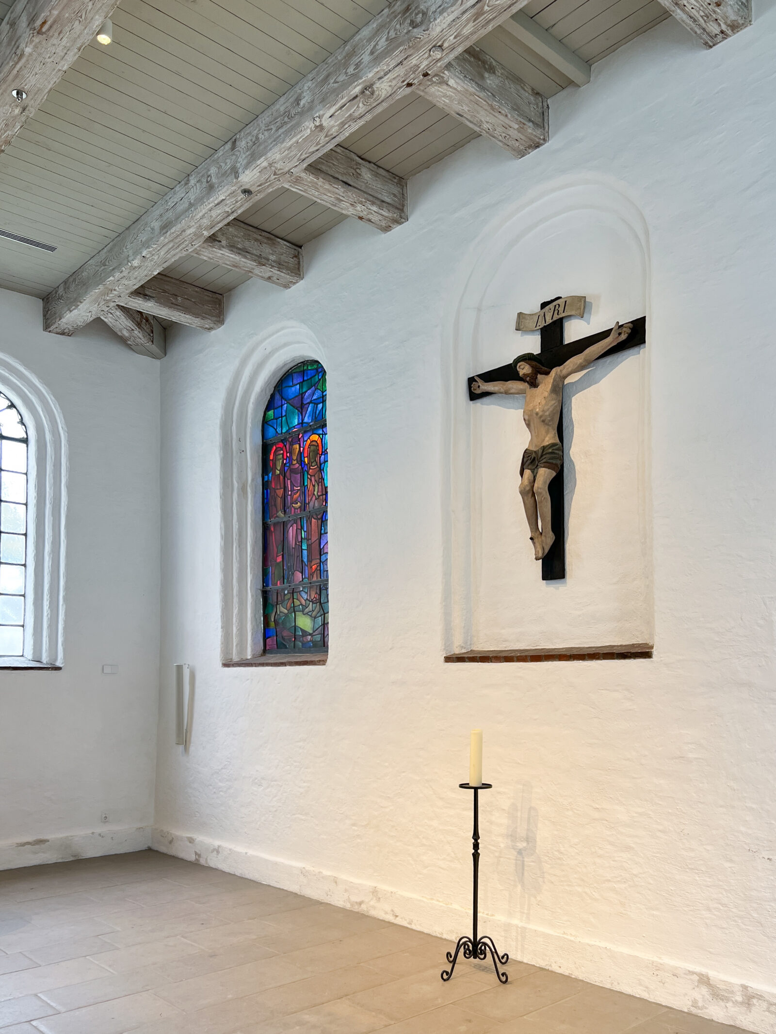 Durch eine zurückhaltende Lichtführung entsteht eine ruhige, ausgewogene Atmosphäre, die sowohl dem Gottesdienst als auch Momenten der Stille gerecht wird. Die Beleuchtung fügt sich selbstverständlich in den bestehenden Raum ein und macht die besondere Wirkung der Kirche neu erfahrbar.