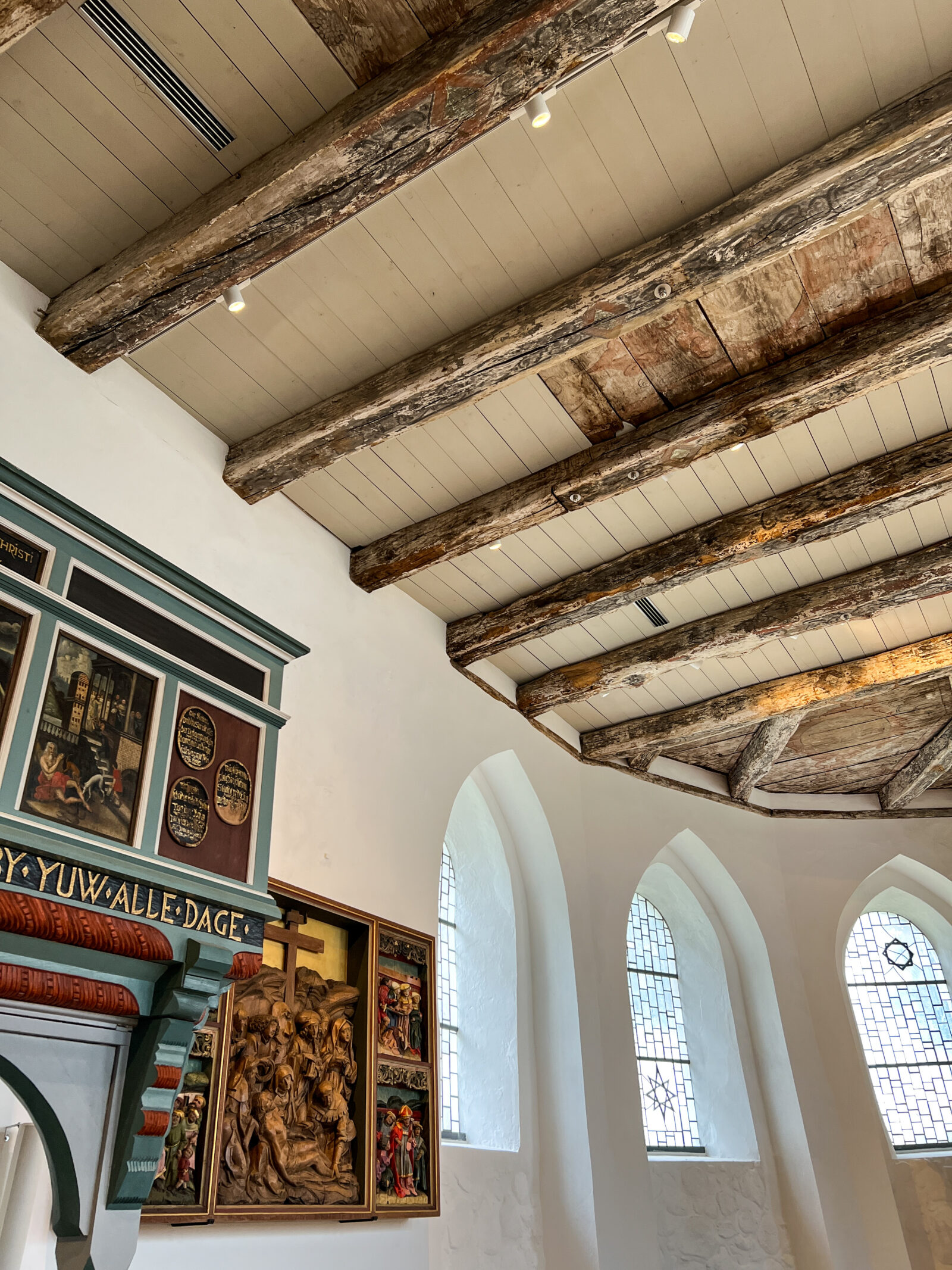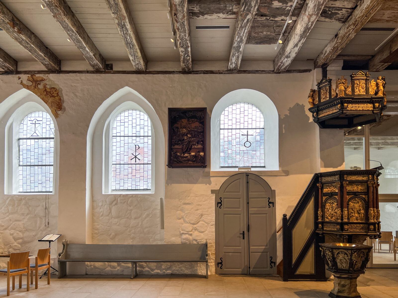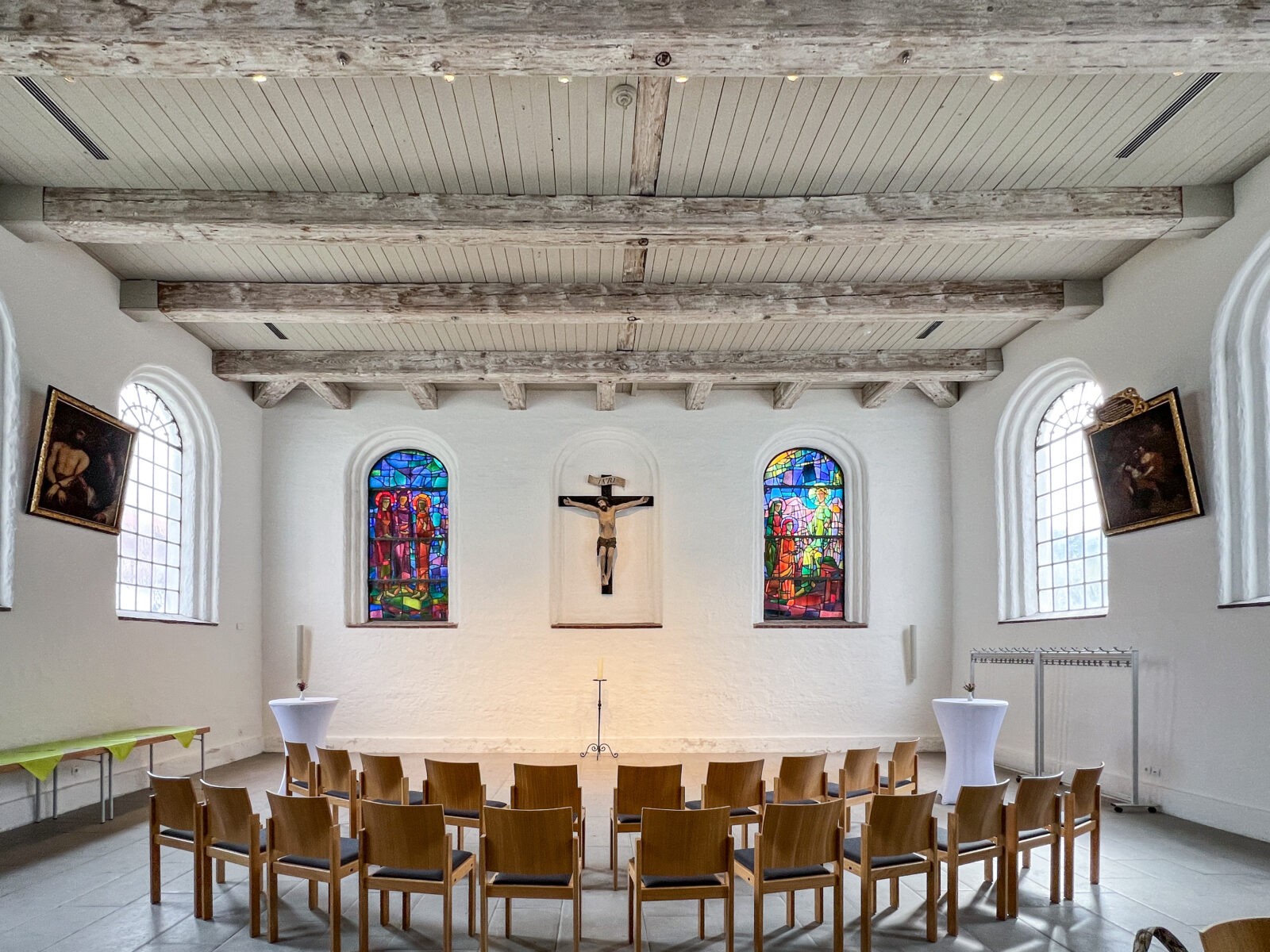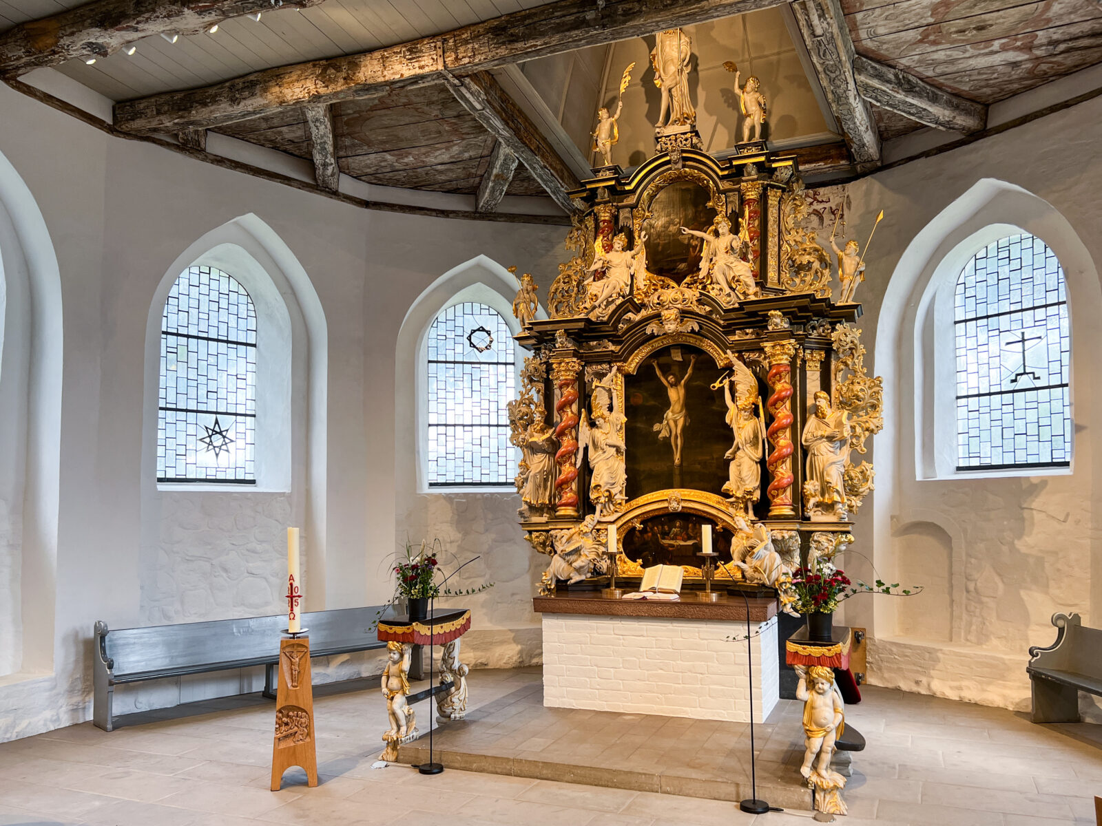 Durch eine zurückhaltende Lichtführung entsteht eine ruhige, ausgewogene Atmosphäre, die sowohl dem Gottesdienst als auch Momenten der Stille gerecht wird. Die Beleuchtung fügt sich selbstverständlich in den bestehenden Raum ein und macht die besondere Wirkung der Kirche neu erfahrbar.